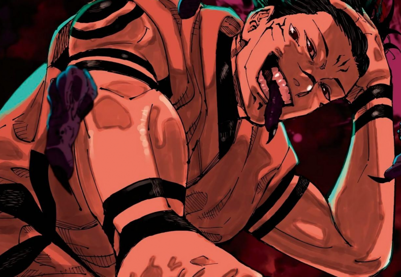 Это, честно говоря, момент катарсиса после того, как с Юдзи обошлись за последние несколько глав. Его предали, у него отняли цель его жизни, он потерял несколько частей тела, а теперь потерял и лучшего друга из-за проклятия, которое всегда мучило его. Жизнь в последнее время не слишком благосклонна к Юдзи (и, скорее всего, не собирается улучшаться в ближайшее время), так что мы хотя бы видим, как он выплескивает свое разочарование на Сукуне.