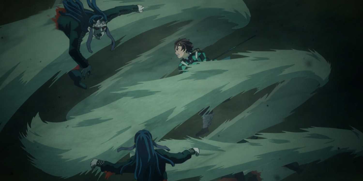 Он открыл технику «Хаос водных всплесков», которая позволяет ему наносить мощные удары, не задерживаясь на земле слишком долго. Этот сложный прием сложно выполнить, но рвение Танджиро позволило ему одержать верх над противником и нанести смертельный удар, который раз и навсегда определил победителя битвы.