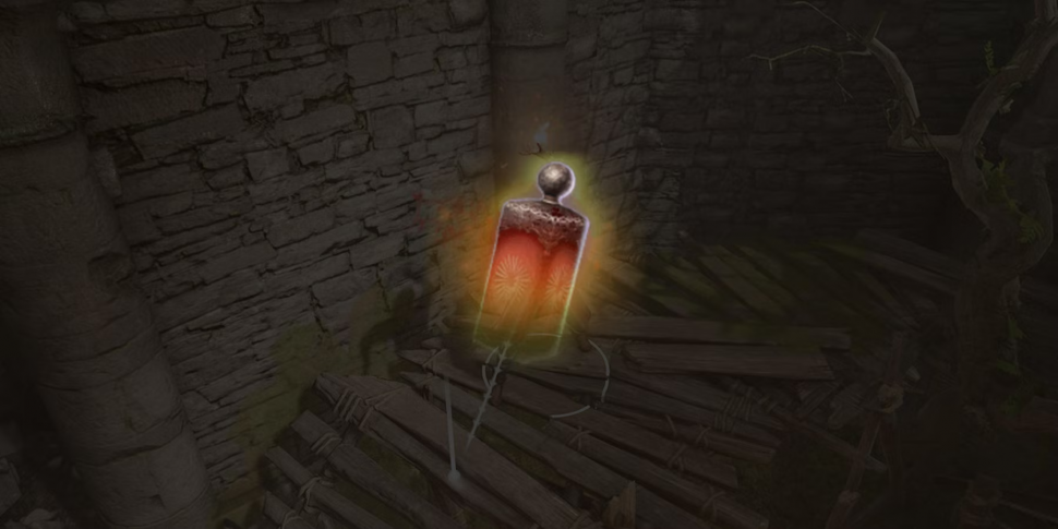 Feuer des Alchemisten, ein Granatengegenstand, fügt Feinden bei jedem Treffer 1W4 Schaden zu.