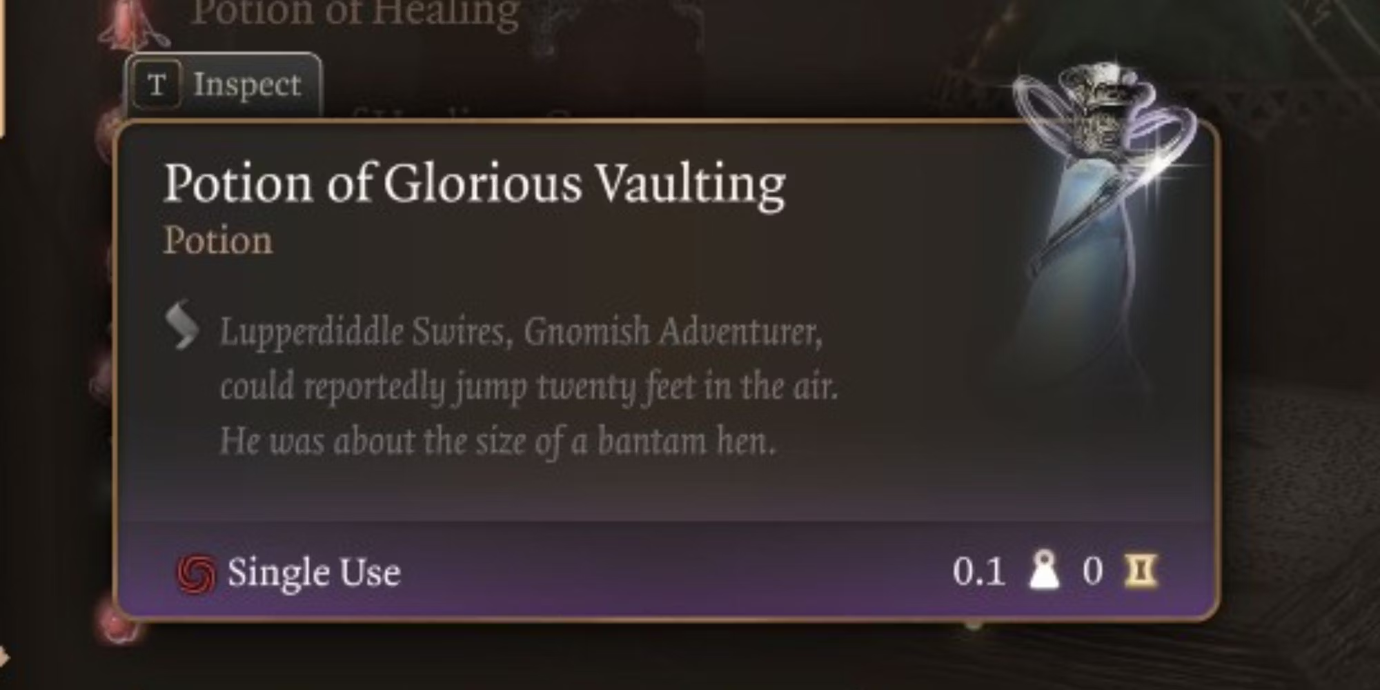 Dieser Trank kann verwendet werden, um die Sprungweite des Spielers zu erhöhen und ist beim Erkunden am effektivsten.