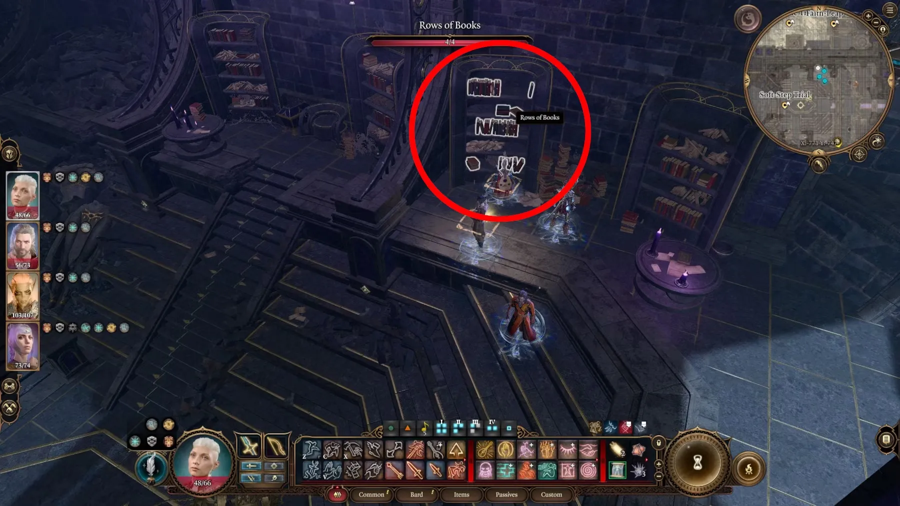 Um das Rätsel „Das Rätsel der Nacht“ zu lösen, müssen Baldur's Gate 3-Spieler ein Buch in die Hände bekommen, das sich in der Stillen Bibliothek befindet. Das Buch heißt insbesondere „Teachings of Loss: The Nightsinger“ und Sie können es aus dem Bücherregal an den Koordinaten X:-771 Y:-742 nehmen. Bemerkenswert ist, dass dieses Regal zunächst eine Falle ist und mit einer erfolgreichen Geschicklichkeitsprüfung der Schwierigkeit 14 entschärft werden kann.