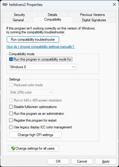 - Führen Sie das Spiel im Windows 8-Kompatibilitätsmodus aus.