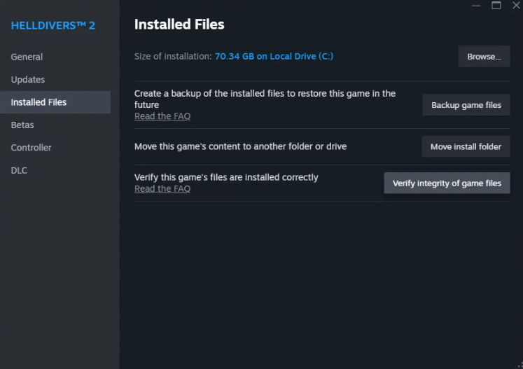 - Klicken Sie auf „Integrität der Spieledateien prüfen...“