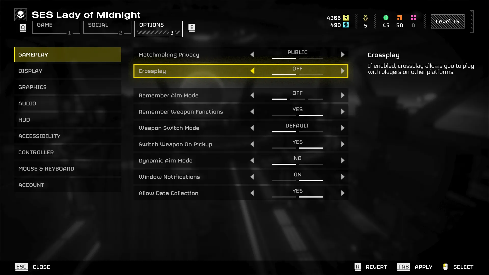Das Deaktivieren von Crossplay in den Spieloptionen löste die Probleme, die viele Spieler hatten, möglicherweise im Zusammenhang mit Problemen beim gleichzeitigen Spielen mit Spielern von anderen Plattformen. Deaktivieren Sie Crossplay auf der Registerkarte „Gameplay“ des Menüs „Spieloptionen“.