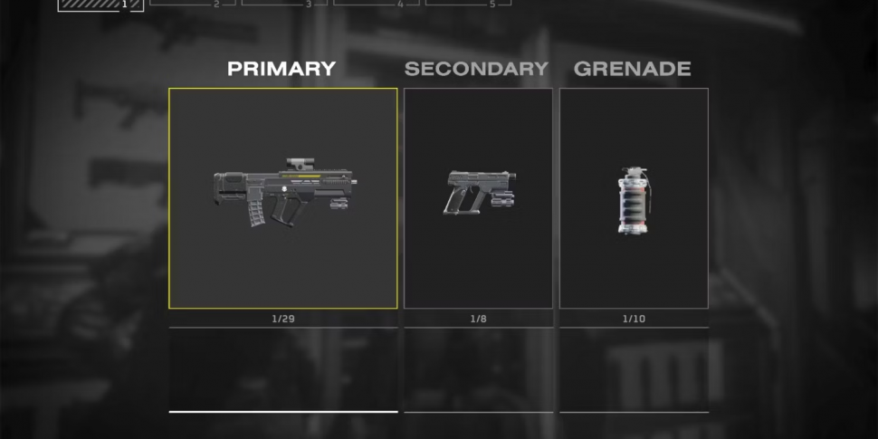 Wenn Sie mit dem Waffenbereich interagieren, wird die Registerkarte „Waffen“ geöffnet, auf der Ihre Primär- und Sekundärwaffen sowie Granatenoptionen angezeigt werden. Da Sie Ihre Primärwaffe ändern möchten, gehen Sie zur Registerkarte „Primär“. Hier sehen Sie alle Hauptwaffen, die Sie freigeschaltet haben. Wählen Sie die gewünschte Waffe aus und klicken Sie auf „Ausrüsten“.
