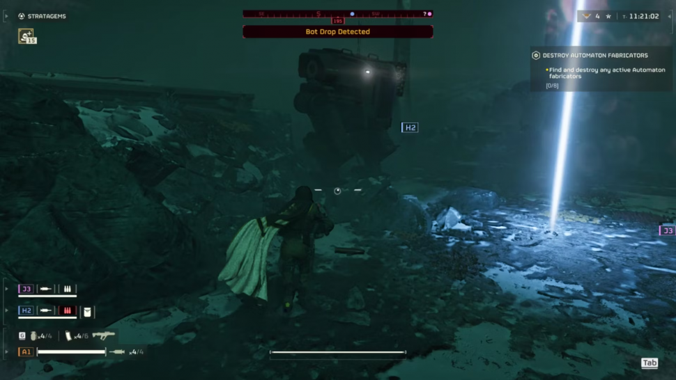 EXO-45 ist mit einem Raketenwerfer an der linken Schulter und einer Minikanone am rechten Arm ausgestattet. Es gibt nur 14 Raketen und 1000 Schuss pro Schwert, und es gibt derzeit keine Möglichkeit, sie wieder aufzufüllen. Erwarten Sie nicht, eine lange Mission mit nur einem Exoanzug zu beenden. Schwere Feinde in Helldivers 2, wie etwa Hulks und Bile Titans, können immer noch Mechs zerstören, und sie sind auch nicht immun gegen freundliches Feuer.