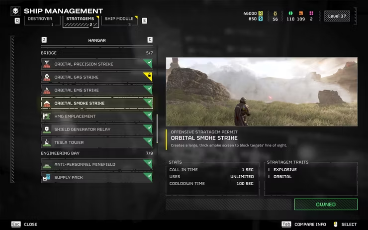 Im Gegensatz zu Eagle Stratagems ist das Beste an Orbital Smoke Strike, dass es eine Zeitüberschreitung von 100 Sekunden und unendlich viele Zauber gibt. Dies gibt Ihnen die Möglichkeit, den Zerstörer jederzeit und überall um Hilfe zu rufen, wenn Ihre Teamkollegen sie benötigen.