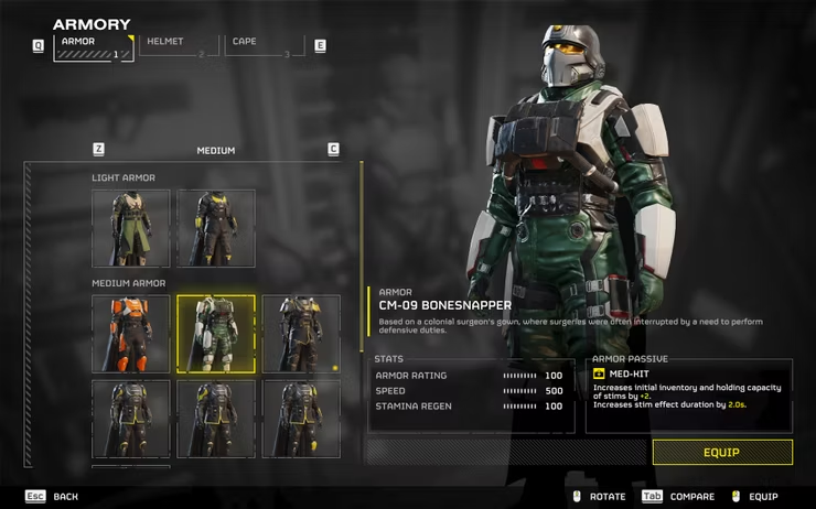 CM-09 Bonesnapper ist die beste Unterstützungsrüstung im Spiel. Die passive Fähigkeit der Rüstung, „Med-Kit“ genannt, erhöht die Reizkraft um zwei Ladungen.