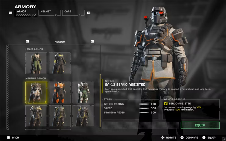 Die Rolle eines Spielers mit einem defensiven Aufbau besteht darin, seine Teamkameraden zu schützen. Dies kann nicht durch die Verwendung von Rüstungen mit niedrigerem Rüstungswert und schwacher passiver Panzerung erreicht werden. SA-12 Servo Assisted ist die beste Rüstung für einen defensiven Aufbau, da sie 50 Prozent der Gliedmaßengesundheit bietet.
