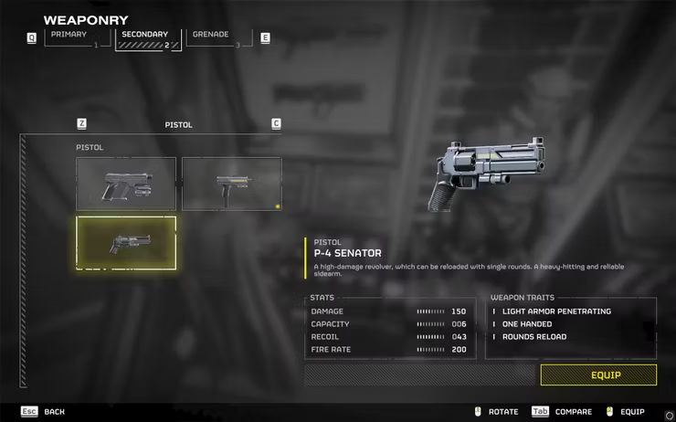 Die P-4 Senator ist eine hervorragende Pistole zur Ergänzung einer Verteidigungsformation. Diese Pistole hat den höchsten Schaden pro Kugel, den Sie im Spiel erzielen können.