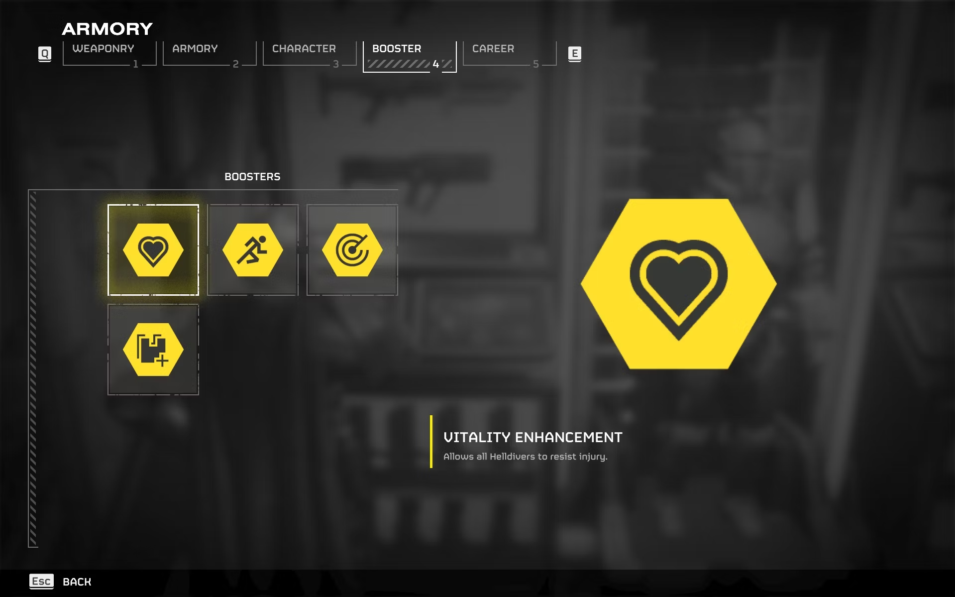 Die meisten Verletzungen brechen Gliedmaßen und machen den Taucher geschwächt. Der Vitality Enhancement Booster ist für das Überleben in einem Vier-Personen-Trupp von entscheidender Bedeutung, insbesondere wenn Sie auf der Schwierigkeitsstufe „Höllentauchen“ spielen.