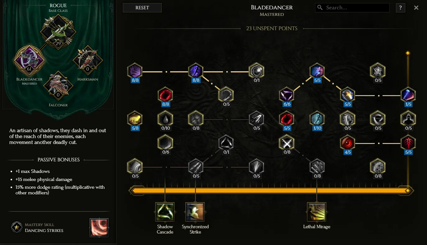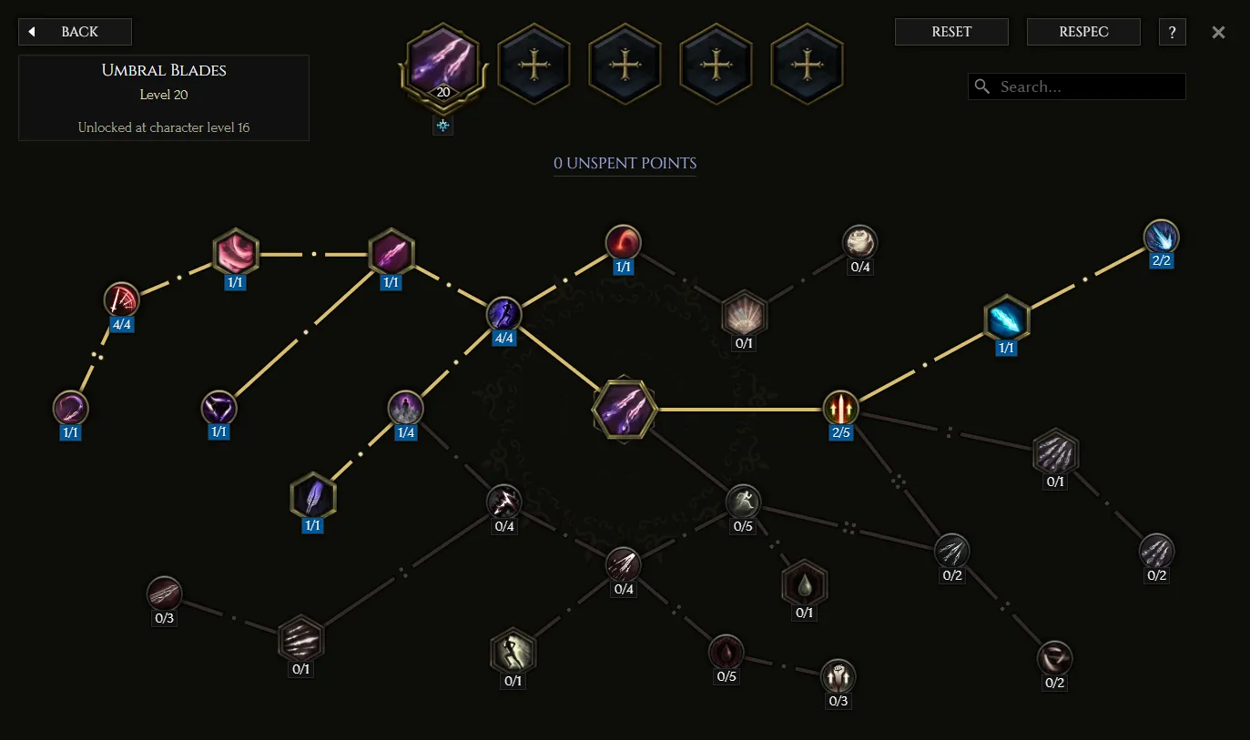 Klingentänzer-Schattendolch-Fertigkeitsbäume: