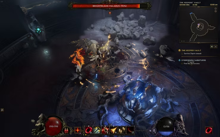 Sie werden von Wellen von Osprix sowie mehreren Augen von Rahye angegriffen. Während du sie abwehrst, bleibt Hüter Balthas in der Mitte links in der Arena, also bleib in der Nähe und beschütze ihn, bis Brightblade Palarus erscheint.