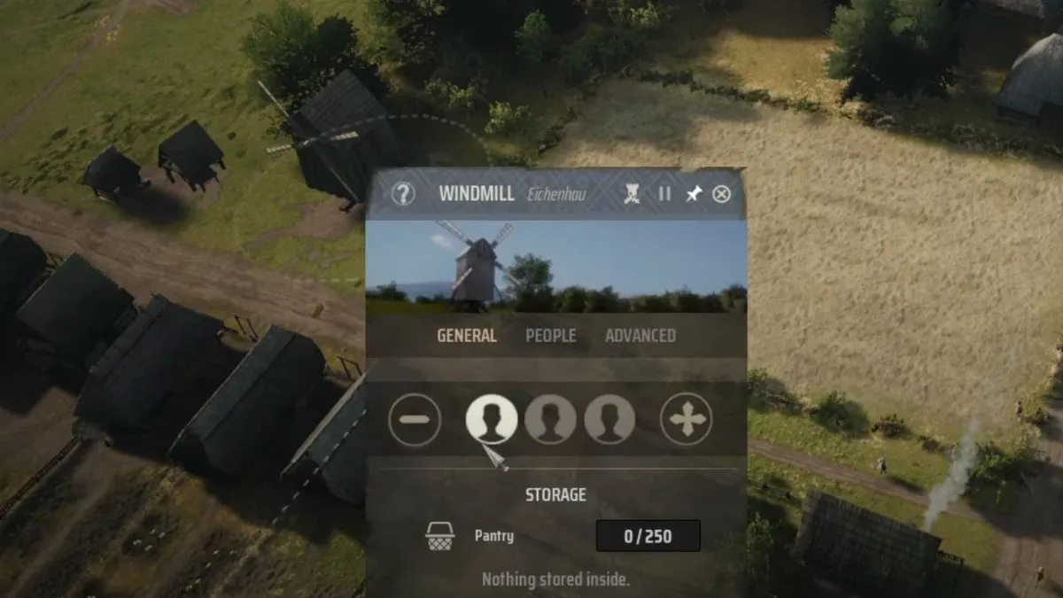 Um Getreide in Mehl zu verwandeln, müssen Sie eine Windmühle bauen. Der einzige Zweck dieses Gebäudes besteht darin, Getreide zu Mehl zu verarbeiten. Weisen Sie dieser Aufgabe also Arbeiter zu.