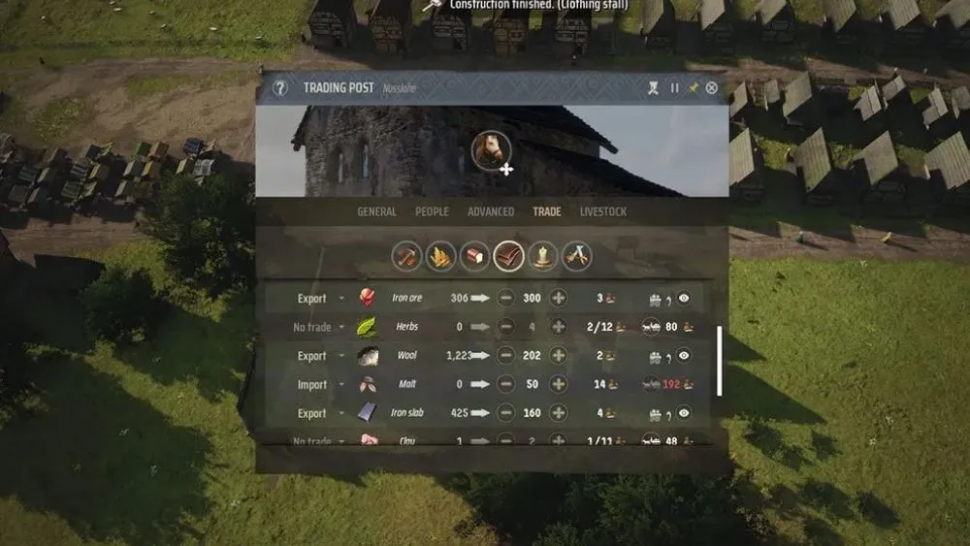 Durch den Bau eines Handelspostens können Sie verschiedene Ressourcen wie Feldfrüchte, Materialien und Waren importieren oder exportieren. Der Export überschüssiger Güter ist jedoch der Schlüssel zur Schaffung regionalen Wohlstands durch Handel.