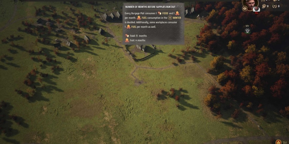 Um eine konstante Brennstoffversorgung in Ihrem Betrieb aufrechtzuerhalten, stellen Sie sicher, dass mindestens eine Arbeiterfamilie in der Holzfällerhütte arbeitet. Behalten Sie Ihre Vorräte und deren Menge im Menü „Vorräte“ immer im Blick, insbesondere vor dem Wintereinbruch. Es empfiehlt sich, bereits im Herbst damit zu beginnen, sich mit den nötigen Ressourcen einzudecken und sich bestmöglich auf den bevorstehenden Winter vorzubereiten.