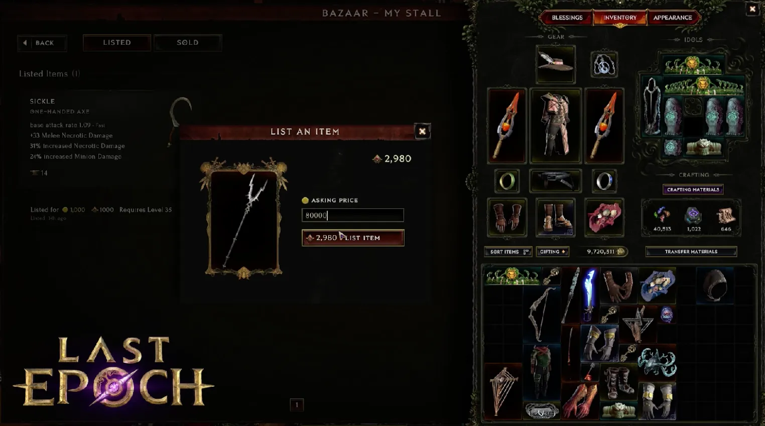 Last Epoch : Comment vendre et acheter des objets via la guilde des marchands