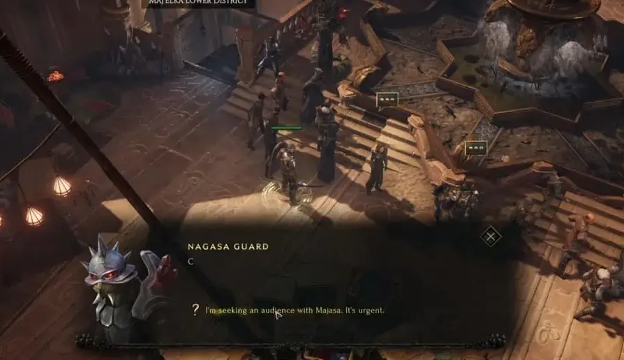 Le dialogue suivant vous dirigera vers le bidonville de Maj'elka, où vit un personnage clé nommé Scalebane Fence. Ce PNJ fantôme devrait en savoir plus sur la valeur de la relique.