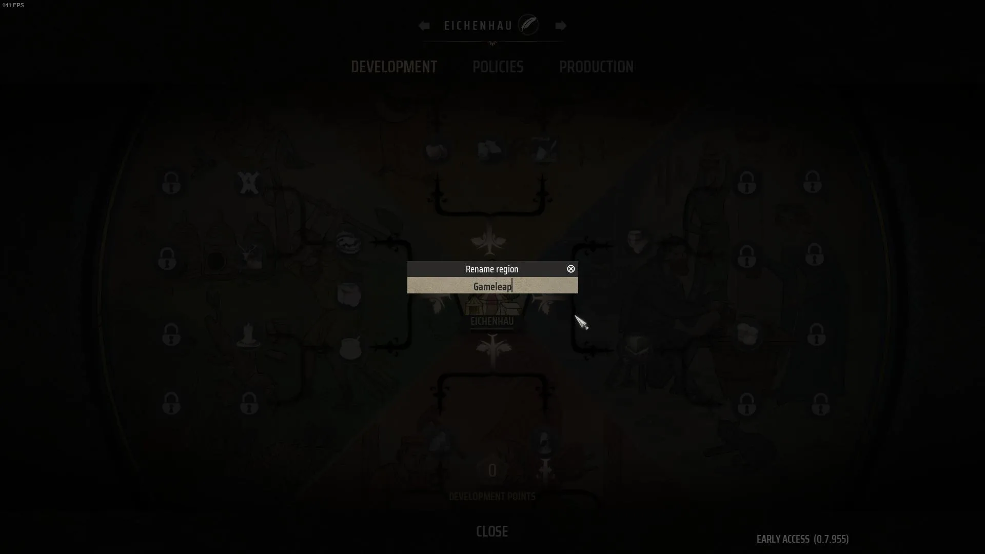 Chaque fois que vous démarrez une nouvelle partie dans Manor Lords, la première région dans laquelle vous commencez votre voyage aura un nom aléatoire. Pour changer ce nom, regardez en haut de l'écran et cliquez sur le nom de la région, qui se situe entre statistiques et ressources. Si vous cliquez sur le titre, vous serez redirigé vers le menu de développement, où vous pourrez retrouver l'arbre de progression complet du jeu, ainsi que les sections « Politique ». et "Production".