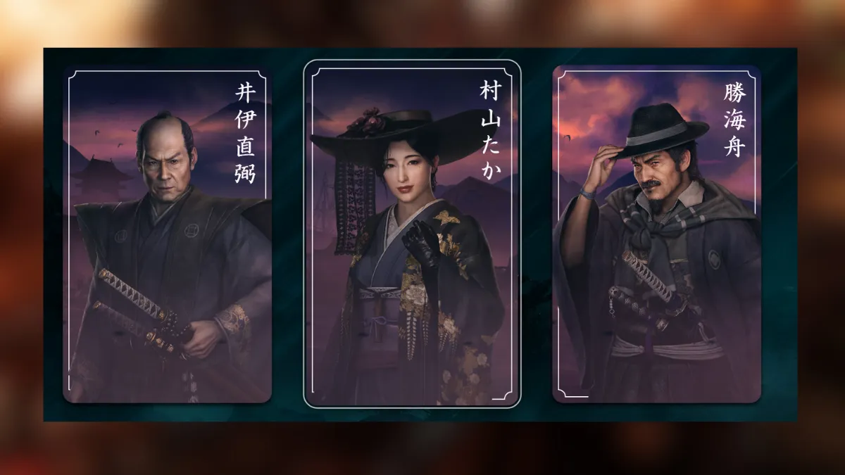 - Naosuke Ii (Hiroyuki Ringa) - Ministre en chef du shogunat qui a ouvert les ports du Japon au commerce extérieur. Connu sous le nom d'impitoyable "Red Demon Ai". Maîtrise l'art du combat à l'épée.