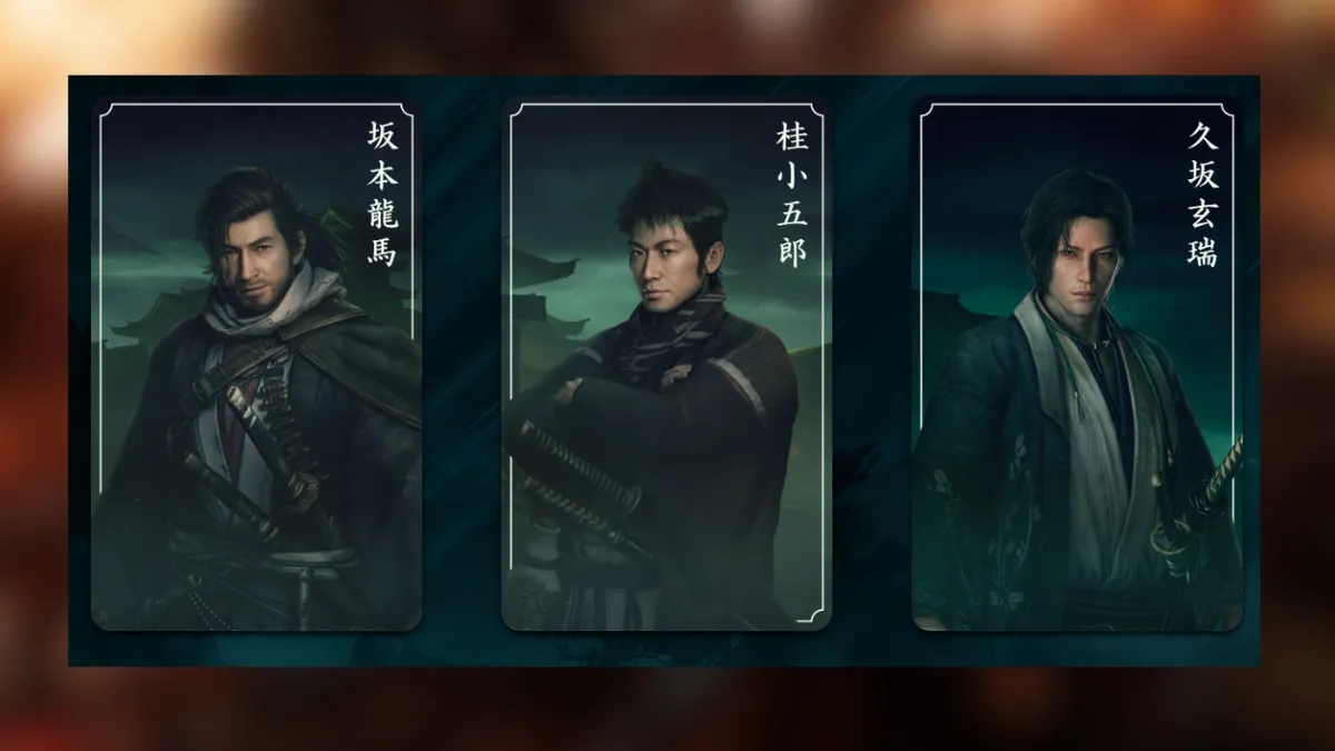 - Ryoma Sakamoto (Mutsunokami Yoshiyuki) est un ronin qui cherche à mettre le Japon sur la voie de l'ouverture commerciale. Maître du tir à l'épée et au pistolet.