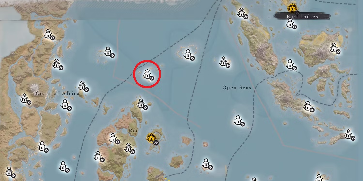 Trouver l'avant-poste du Moyenne Cirque dans Skull and Bones ne sera pas difficile. Elle est située du côté sud-est de l'île de L'Escal, au nord de Sainte-Anne et au nord-est des îles de la Lune, directement au-dessus de la région de l'Île Rouge (une des six régions de Skull and Bones). Vous pouvez également vous diriger après un voyage rapide jusqu'à l'avant-poste de Lanitra.
