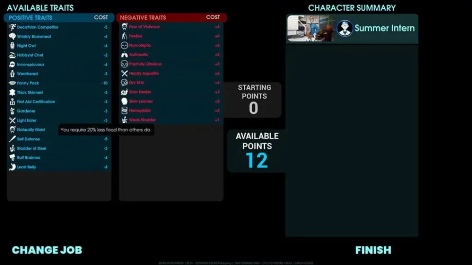 Черта «Легкоед» очень похожа на черту «Естественная влажность», но вместо снижения потребности в воде она уменьшает количество необходимой пищи. Это может быть очень полезно, так как большинство продуктов, которые вы встретите в Abiotic Factor, могут быть относительно опасными для употребления, а найти способ их приготовить может быть довольно сложно. С помощью «Легкоеда» вам требуется на 20 % меньше еды, чем вашим коллегам-ученым, и это стоит три очка.