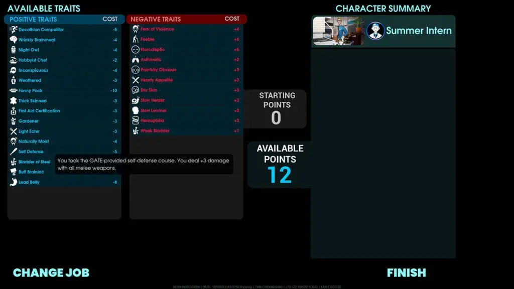 Черта «Самозащита» - одна из лучших, если не самая лучшая черта для улучшения боевых способностей. Когда вы только начинаете работать в GATE, вам будет трудно побеждать в боях с самодельным оружием, которое наносит мало урона. К счастью, трейт «Самооборона» означает, что вы прошли предоставленный GATE курс самообороны и теперь наносите +3 урона всем оружием ближнего боя, но этот трейт довольно дорогой и стоит пять очков.