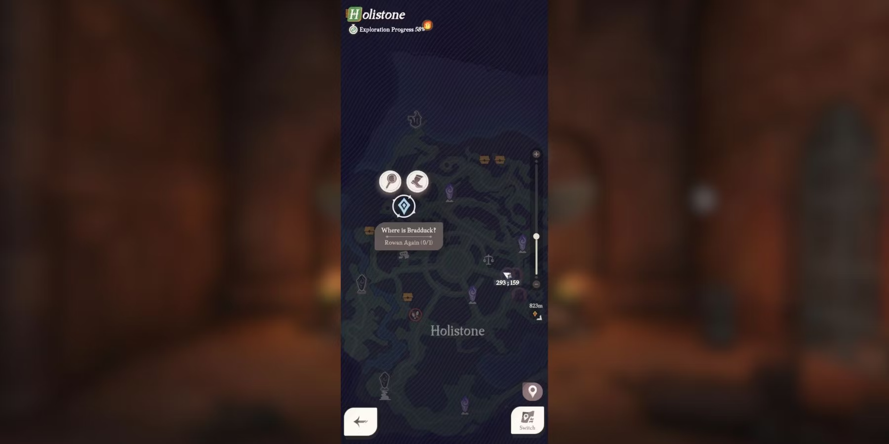 Вы можете увеличить масштаб карты и коснуться интерактивного объекта, персонажа или святыни, чтобы телепортироваться в это место.