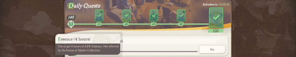 Помимо AFK-этапов, хорошим ежедневным средством повышения эссенции героя являются ежедневные квесты.