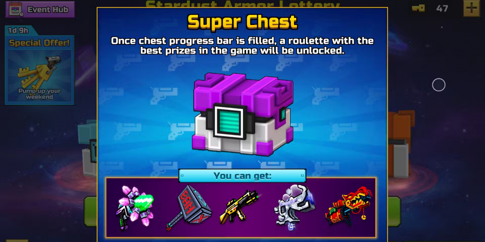 Суперлотерею можно найти в левой части главного лобби. Здесь вы увидите три разных сундука: Сундук новичка, Сундук бойца и Сундук победителя. Для их открытия потребуется от 10 до 150 ключей. Однако Ультиматум можно найти только в Суперсундуке, который находится в фиолетовом сундуке чуть выше остальных. Чтобы открыть один из них, вам нужно получить 1 000 очков. Каждый раз, когда вы открываете один из лотерейных сундуков, вы получаете несколько очков. Однако для этого вам придется собрать кучу ключей, что может занять некоторое время.