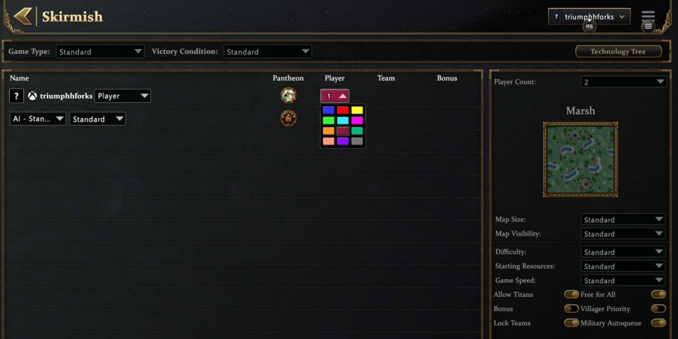После того как геймеры изменят настройки игры в Age of Mythology: Retold, настанет время организовать сражение. На экране создания стычки игроки могут изменить три основных раздела настроек: