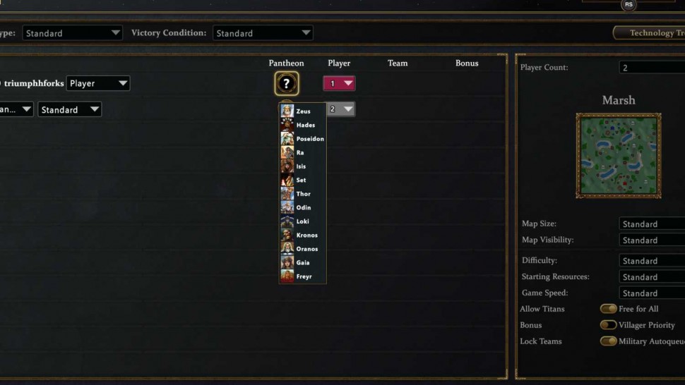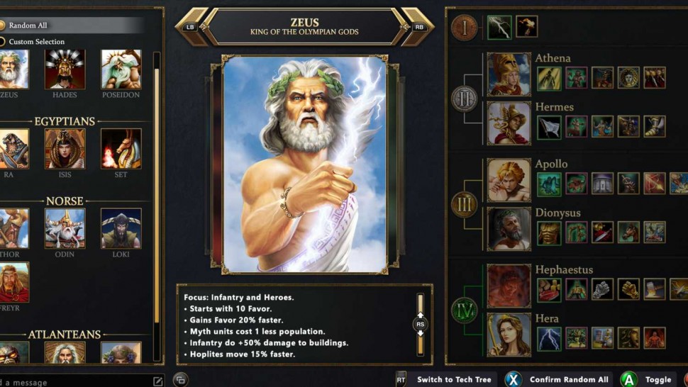Наконец, геймерам предстоит выбрать цивилизацию, которой они хотели бы управлять, и Пантеон, которому они хотели бы поклоняться. Другие цивилизации будут добавлены в игру в грядущем DLC, а пока вот список пантеонов, доступных в Age of Mythology: Retold: