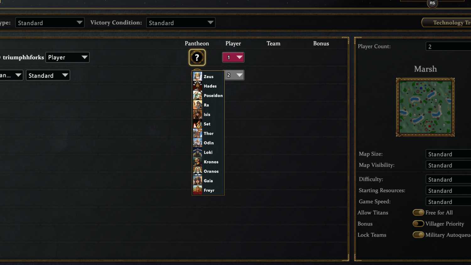 После того как геймеры изменят настройки игры в Age of Mythology: Retold, настанет время организовать сражение. На экране создания стычки игроки могут изменить три основных раздела настроек: