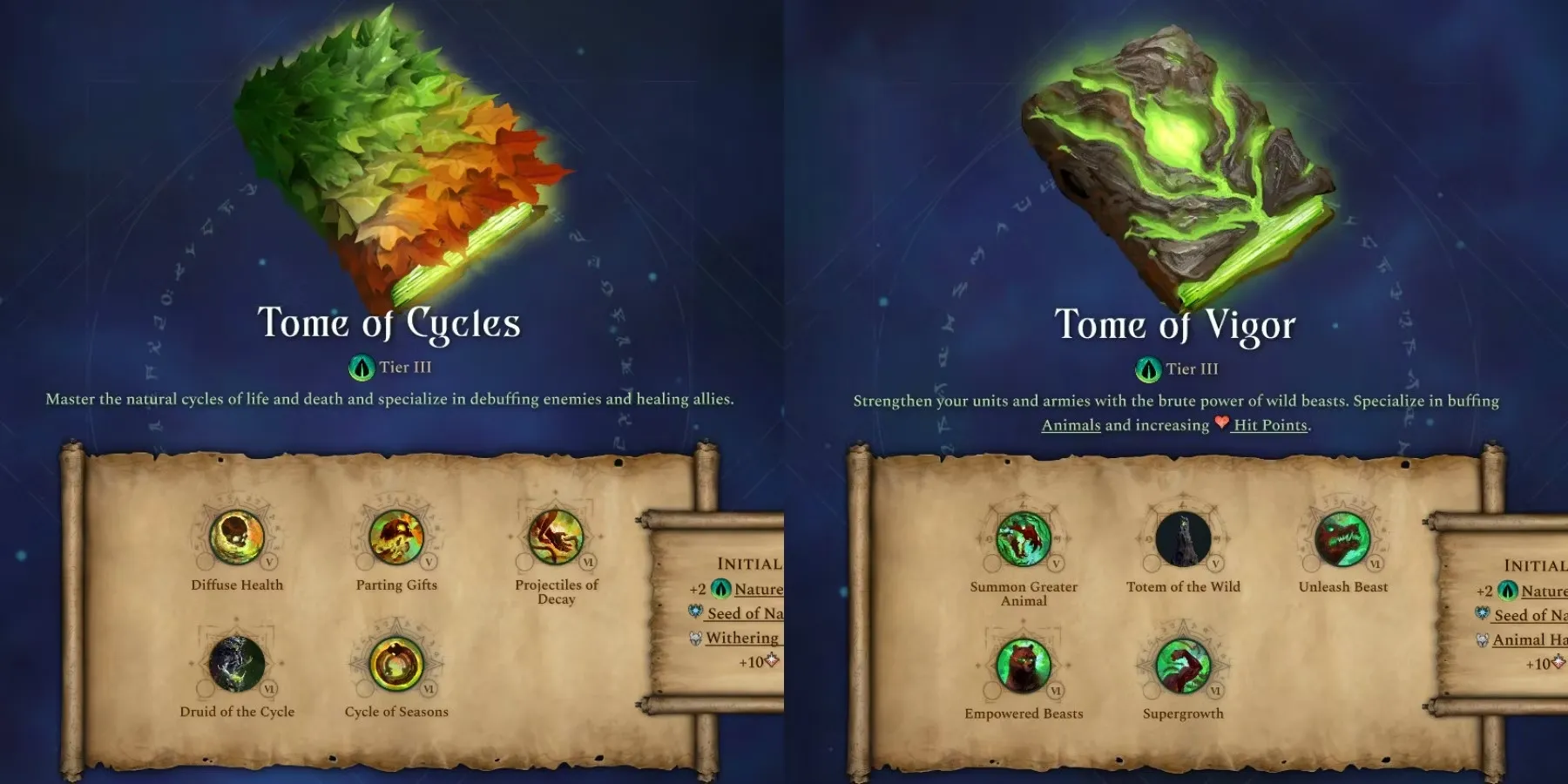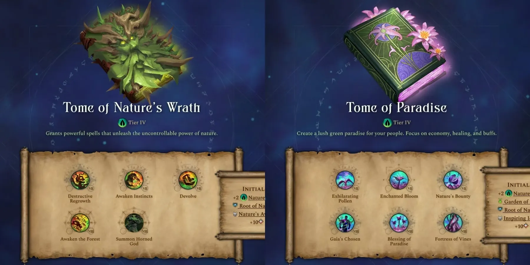 Оба тома сродства природы 3-го уровня открывают специальное улучшение провинции "Семя Астрала", первый шаг к победе магии в Age of Wonders 4.