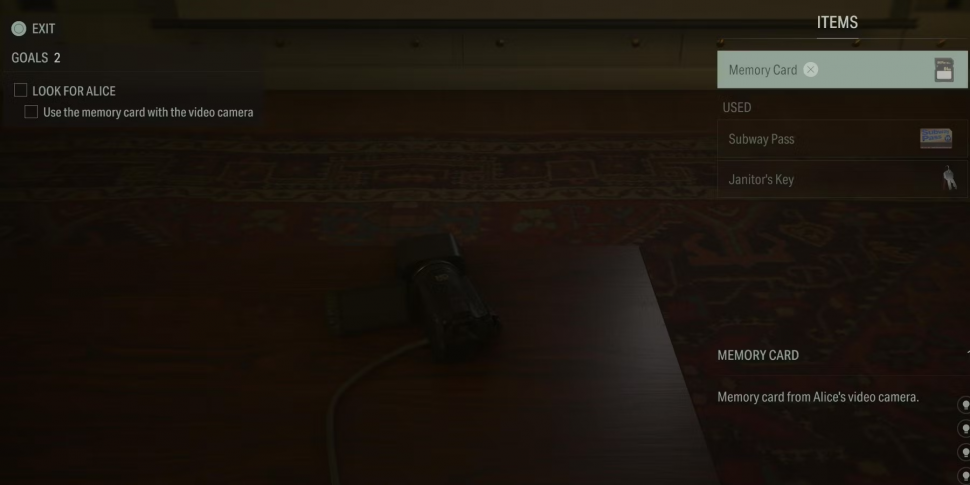 Войдя в квартиру, начните осматриваться в поисках Алисы. В правом дальнем углу комнаты есть дверь. Исследуйте квартиру и найдите фотоаппарат на столе в гостиной. В нем отсутствует карта памяти, которую можно найти на острове в кухне.