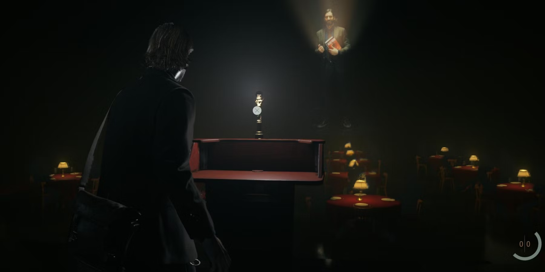 Достигнув конца этой зоны, взаимодействуйте с телевизором, чтобы продвинуться по сюжету. Затем игроки оказываются на церемонии награждения, которая, конечно же, является мюзиклом. Пройдите в заднюю левую часть комнаты и найдите большую лестницу. Пройдите по ней в тупик и воспользуйтесь лампой ангела, чтобы взять свет. Откроется путь вперед. Спустившись по лестнице и пройдя по ней, найдите на земле фонарик и пистолет.