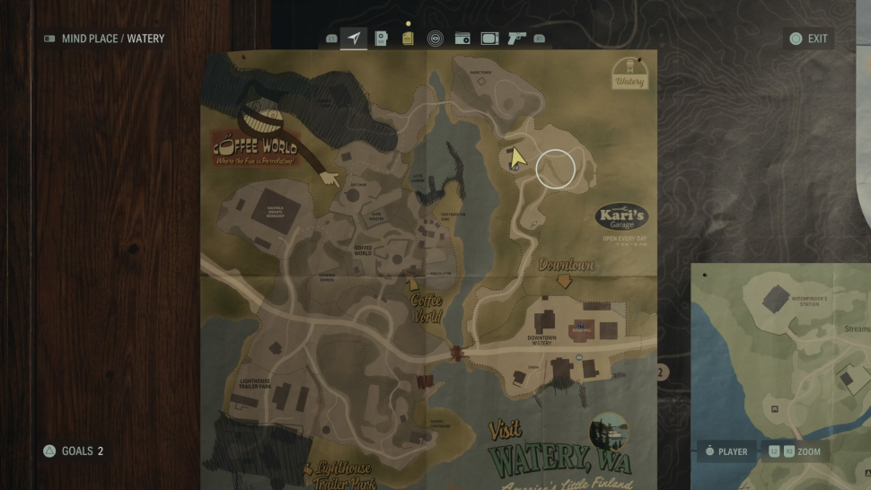 В главе "Возвращение 3: Местная девушка" игроки, взяв под контроль Сагу Андерсон, сначала пообщаются с местными жителями в районе Уотери, а затем их направят по извилистой лесной тропе. Следуя по этой тропе на север по пути к магазину "Мир кофе" в Alan Wake 2, игроки, скорее всего, наткнутся на безопасную комнату в хижине, расположенную здесь: