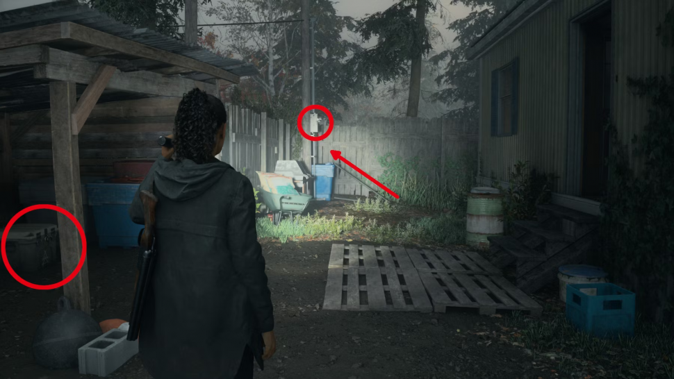К счастью, для получения ключа не нужно далеко ходить, а следует обратить внимание на ограждение к западу от тайника культа. Рядом с забором находится доска, прислоненная к синему контейнеру, и игроки должны подняться по ней, чтобы получить доступ к верхней части электросчетчика, прикрепленного к соседнему столбу. Действительно, на верхушке счетчика можно найти ключ от тайника трейлер-парка, и игрокам Alan Wake следует вернуться в тайник, когда он будет у них в руках.