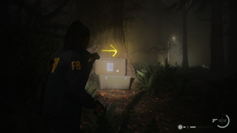 Что касается местонахождения ключа, то игроки, которые доберутся до лагеря, расположенного к северу от холмов Crow's Foot Hills, включат фонарики и повернутся лицом на юг, увидят на деревьях ряд желтых стрелок. Эти стрелки указывают на юг, и игроки Alan Wake, следующие по ним, попадут прямо к ключу, который находится на вершине скалы. Для полной ясности местоположение ключа также отмечено на карте в этом руководстве, и игроки могут свободно вернуться к контейнеру, как только он окажется в руках.