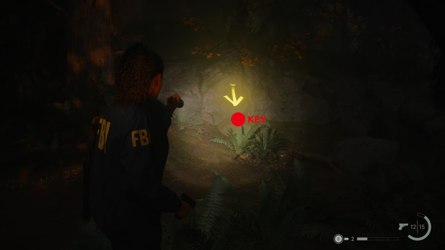 Что касается местонахождения ключа, то игроки, которые доберутся до лагеря, расположенного к северу от холмов Crow's Foot Hills, включат фонарики и повернутся лицом на юг, увидят на деревьях ряд желтых стрелок. Эти стрелки указывают на юг, и игроки Alan Wake, следующие по ним, попадут прямо к ключу, который находится на вершине скалы. Для полной ясности местоположение ключа также отмечено на карте в этом руководстве, и игроки могут свободно вернуться к контейнеру, как только он окажется в руках.