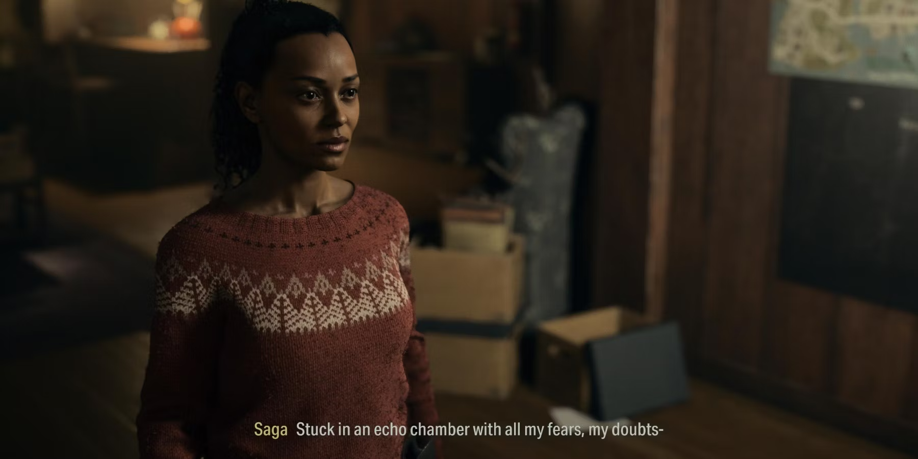 Положительные улики позволят Саге постепенно переломить ситуацию. Когда игроки разместят на доске достаточное количество положительных улик, они получат еще один вариант составления профиля "Другая Сага". Поместите на доску последнюю улику. Поместите на доску закрытую фотографию в футляре и отправляйтесь к двери в задней части "Места разума". Взаимодействуйте с ней, чтобы вызвать сцену.