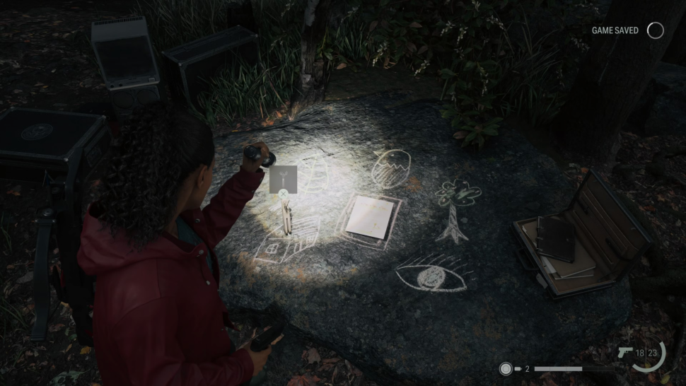 Исследуя различные регионы Alan Wake 2, игроки смогут найти множество побочных головоломок и заданий. Одни из них - секретные тайники, связанные с культом Древа, содержащие дополнительные материалы, другие - ланчбоксы Алекса Кейси с ресурсами для модернизации оружия. Еще одно из таких дополнительных заданий - установка детских стишков в FBC: рисунки мелом с загадкой в виде стихотворения, для активации которых нужно правильно расставить резные деревянные куклы, что приводит к смещению реальности и открывает полезный амулет для Саги Андерсон.