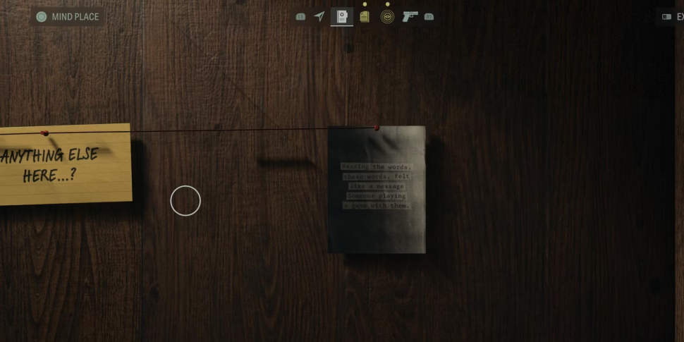 После окончания разговора с помощником шерифа Маллиганом пройдите через дыру в заборе. Прежде чем игроки смогут пройти дальше, им придется пройти обучающее занятие для Saga's Mind Place. В эту отдельную зону можно попасть в любое время, и она позволяет игрокам просмотреть все улики, которые они нашли до сих пор.