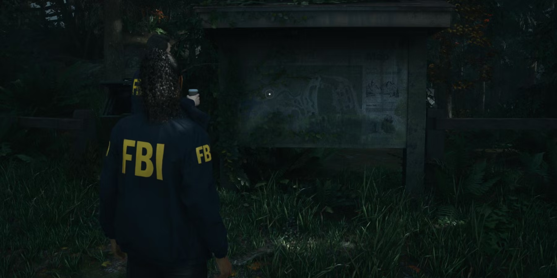 Вернитесь к Кейси и продолжайте следовать за ним к озеру. По пути игроки увидят вывеску с очень знакомой женщиной. Перед табличкой путь вперед окажется прегражденным. Подойдите к нему и осмотрите его, чтобы найти следы и бумагу. Осмотрите их, чтобы продвинуться по сюжету.
