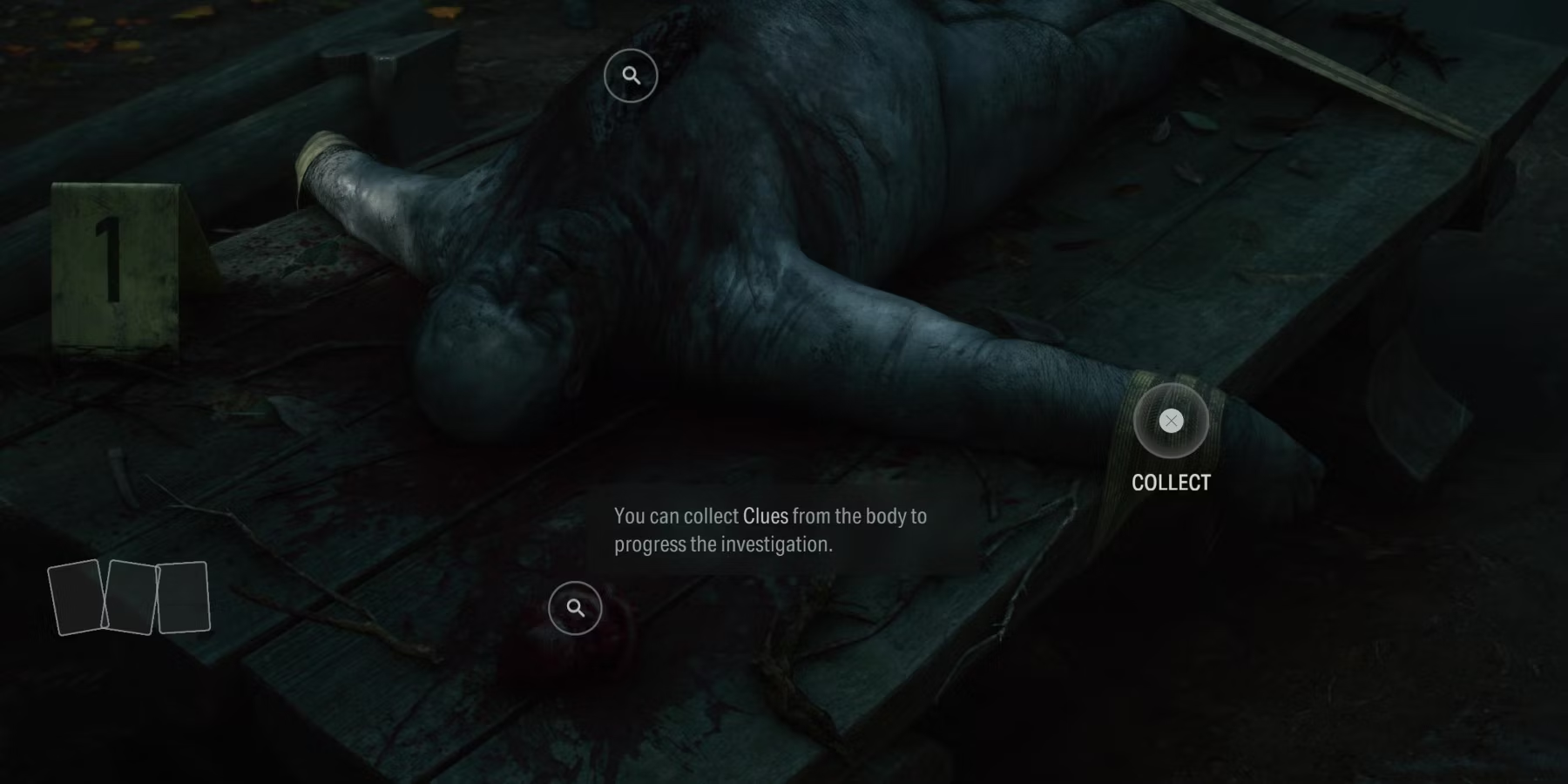 Когда игроки приближаются к телу, у них появляется возможность осмотреть его. В результате они получат изображение Ключа, которое можно поместить на доску в Месте разума. Перейдите к доске и пройдите краткое руководство по размещению предметов на доске. Выйдите из "Места разума" и осмотрите тело в поисках подсказок.