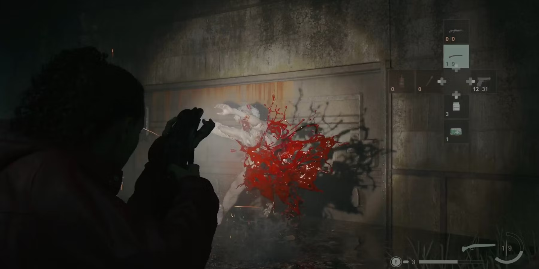 Когда Синтия получит достаточный урон, она впадет в ярость и начнет бегать вокруг Саги, нанося ей удары. Постарайтесь, по возможности, сделать несколько выстрелов из арбалета, а когда Синтия подойдет вплотную, переключитесь на дробовик и расстреляйте ее. Здоровье Синтии уже невелико, когда она переходит в состояние бешенства, но если игроки не могут попасть в нее из арбалета, то сделайте еще несколько выстрелов из дробовика, чтобы уложить ее.