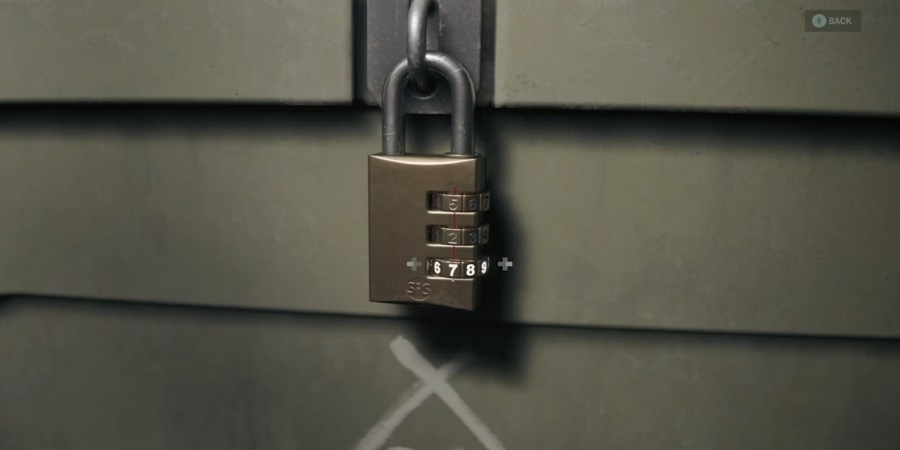 Игроки могут узнать код, разгадав загадку, которая находится неподалеку и включает в себя несколько лотерейных чисел, или просто ввести код замка 7-3-9, и кейс будет разблокирован.
