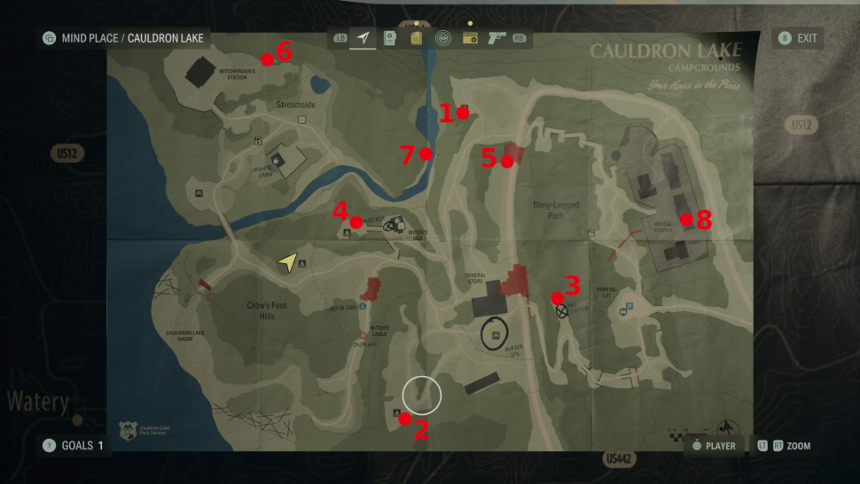 - Начните с развилки дорог к юго-западу от комнаты отдыха в Бункер-Вудс. Идите по тропинке за указателями, ведущими к хижине рейнджера в игре Alan Wake 2 и дому престарелых "Валгалла", чтобы добраться до ланч-бокса.