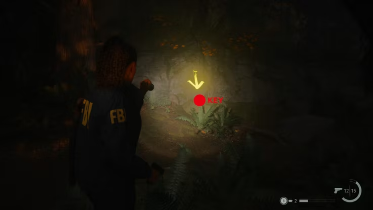 - Примечание: Ключ Streamside Stash Key находится на вершине скалы в месте, отмеченном на карте, которая приведена выше. На деревьях нарисованы желтые стрелки, которые можно обнаружить с помощью фонарика и которые приведут игроков от тайника культа к ключу.